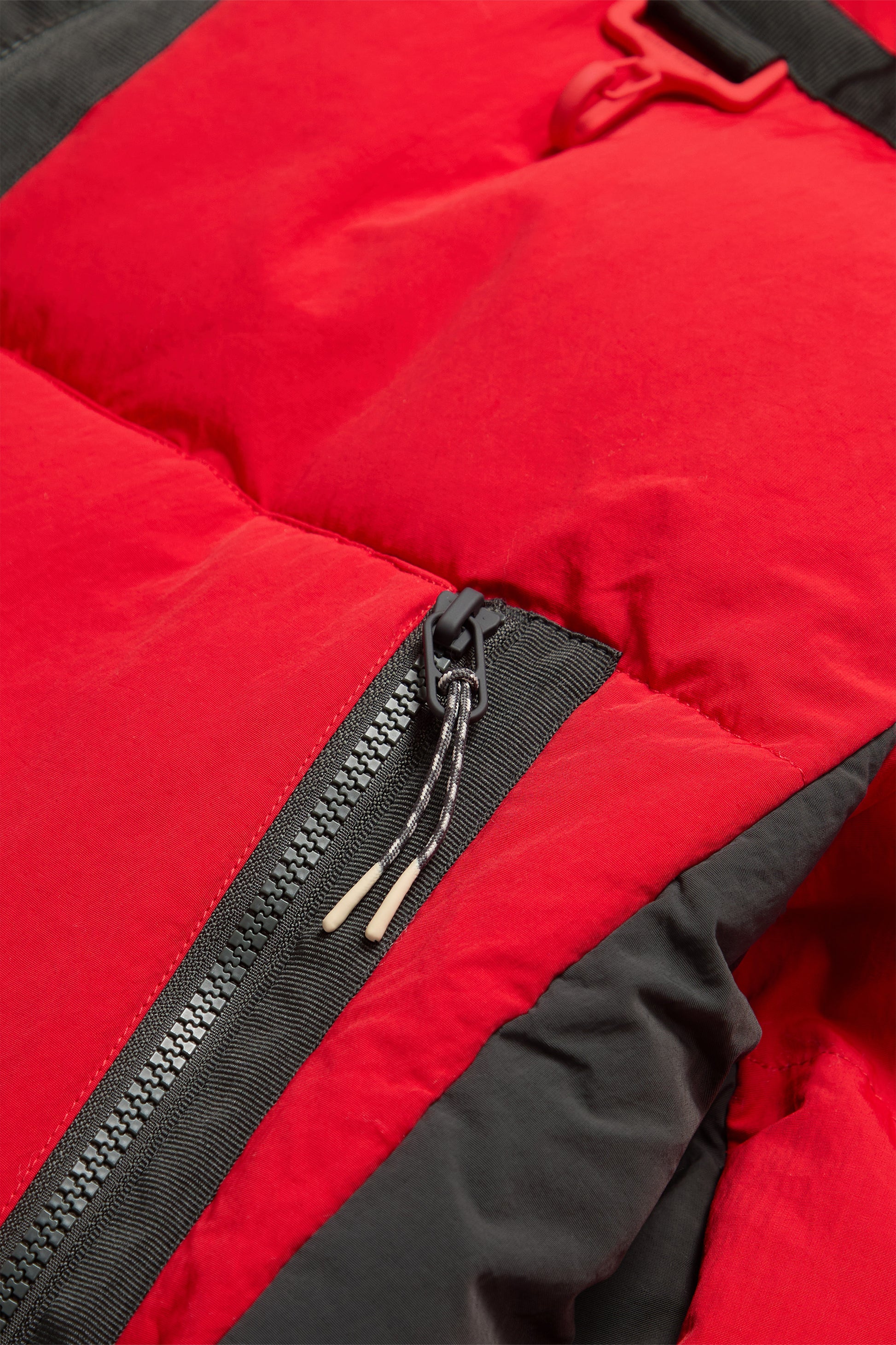 Heavyweight hooded puffer jacket made from a durable poly shell. The jacket has an insulated hood with adjustable bungee cording, oversized patch pockets with zip closures & the RCOS Hook on the chest. There is adjustable bungee cording in the hem of the jacket, elasticated cuffs, interior pockets and the RCOS sleeve patch with concealed embroidery underneath.
