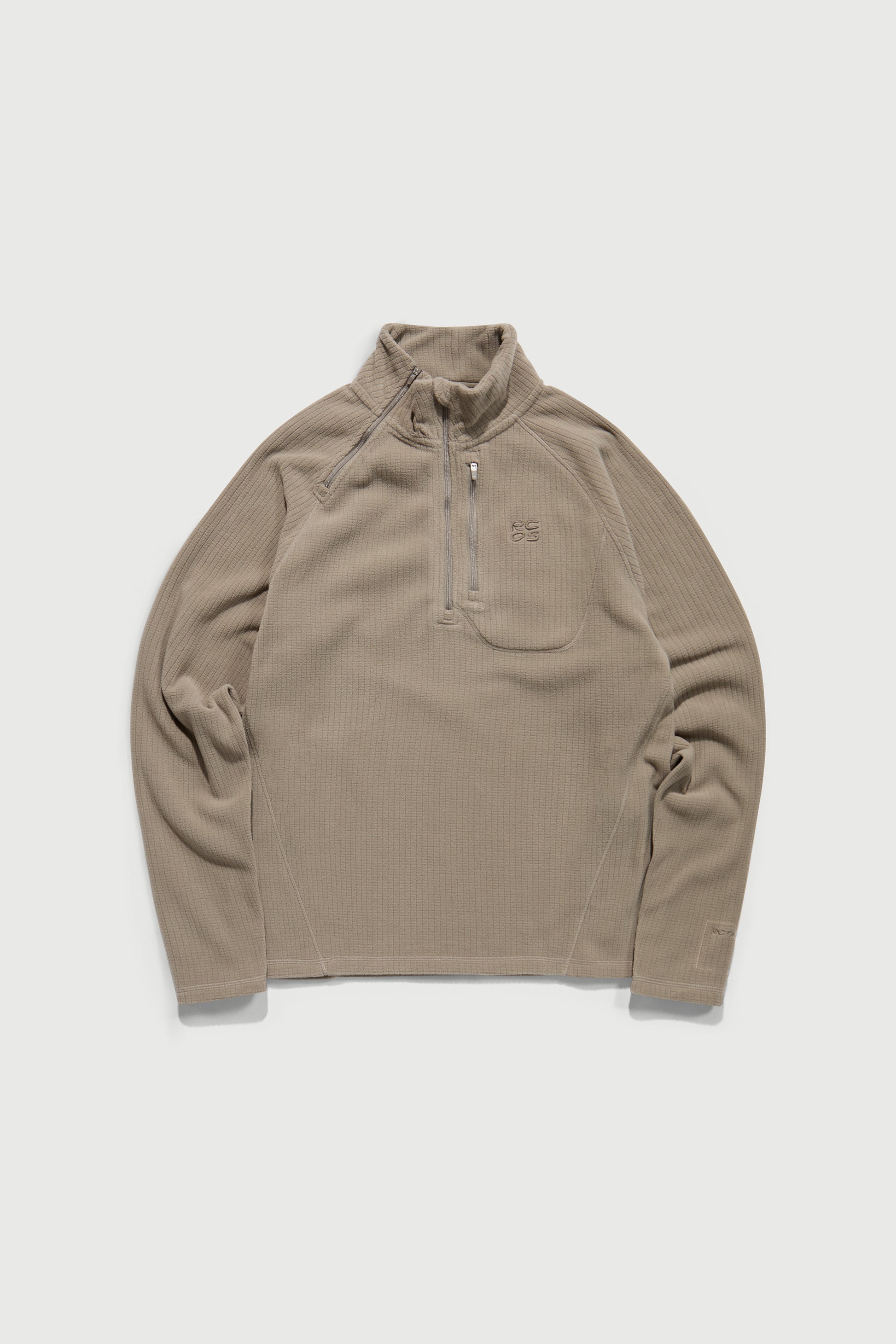 A quarter zip midlayer made from our soft grid fleece. The quarter zip has an additional asymmetrical zipper on the collar & a zipper pocket on the chest allowing you to keep your valuables close during any activity.