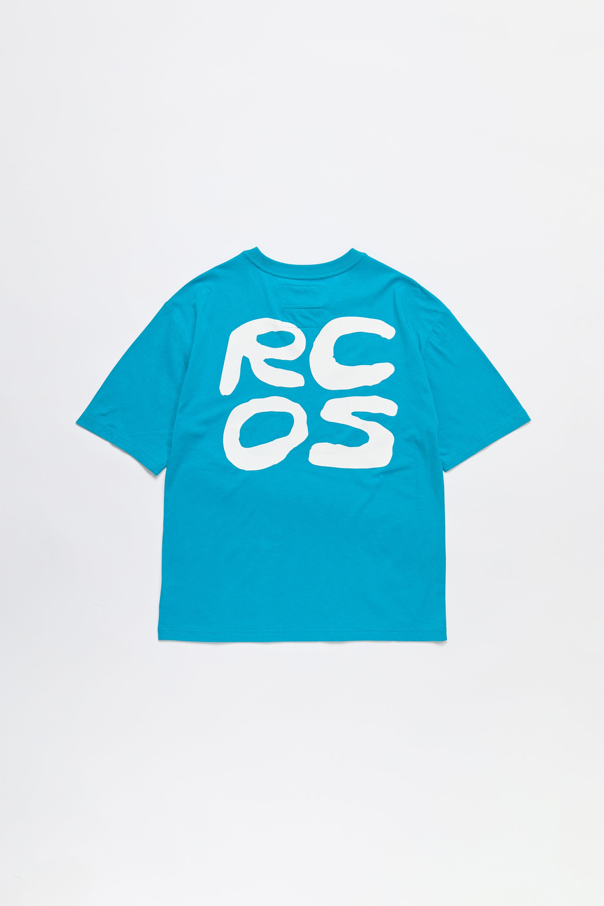 A short sleeve cotton t-shirt with the RCOS stack logo screenprinted on the front and back.