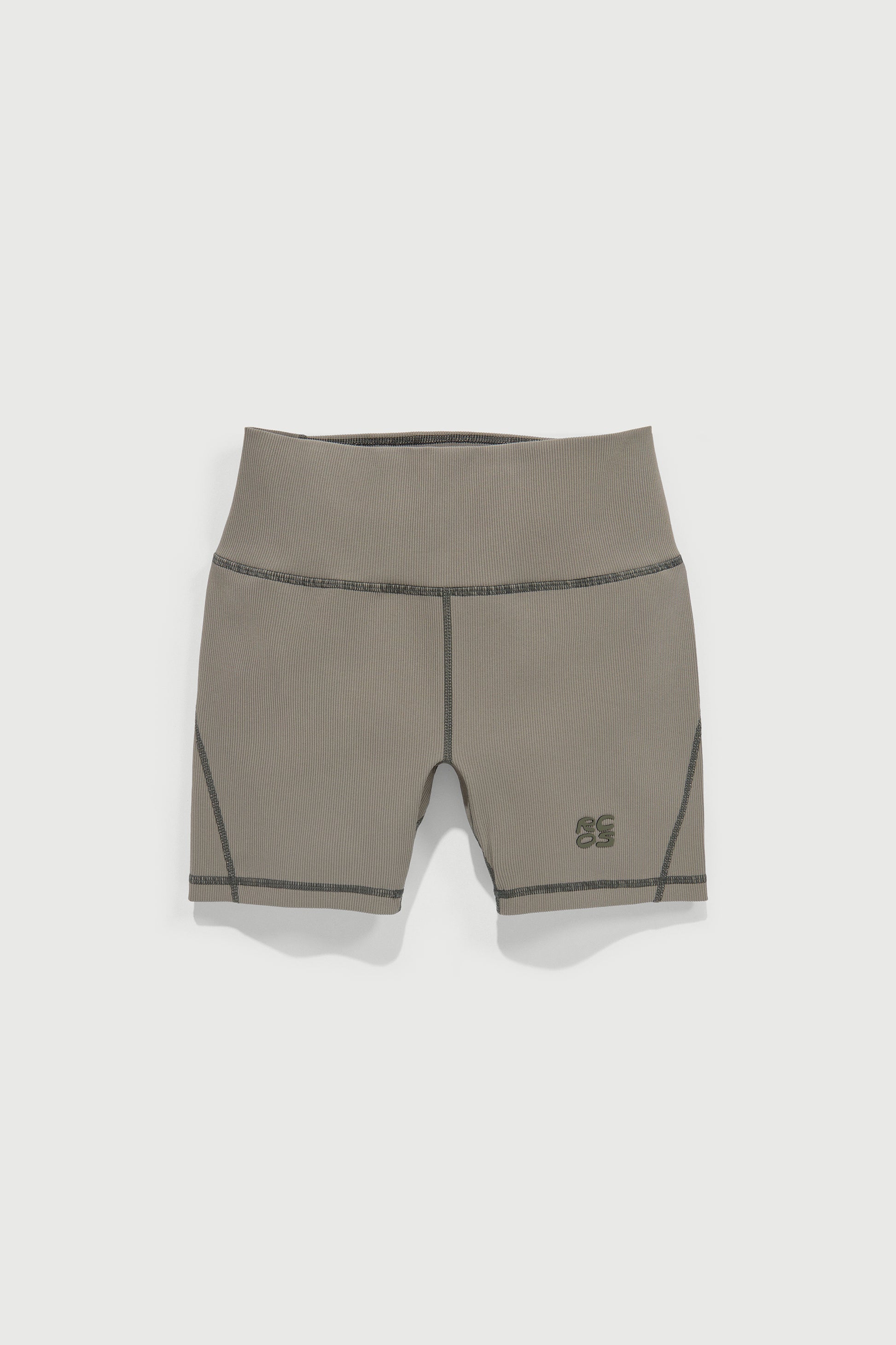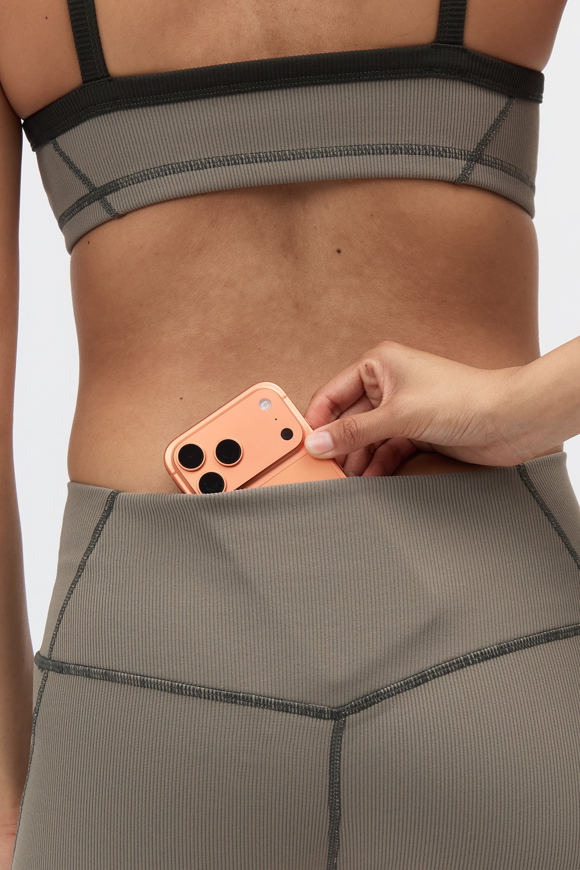 An everyday short for the trail or studio, made from a supportive ribbed fabric with contrast stitching, complete with a phone pocket hidden in the back waistband.