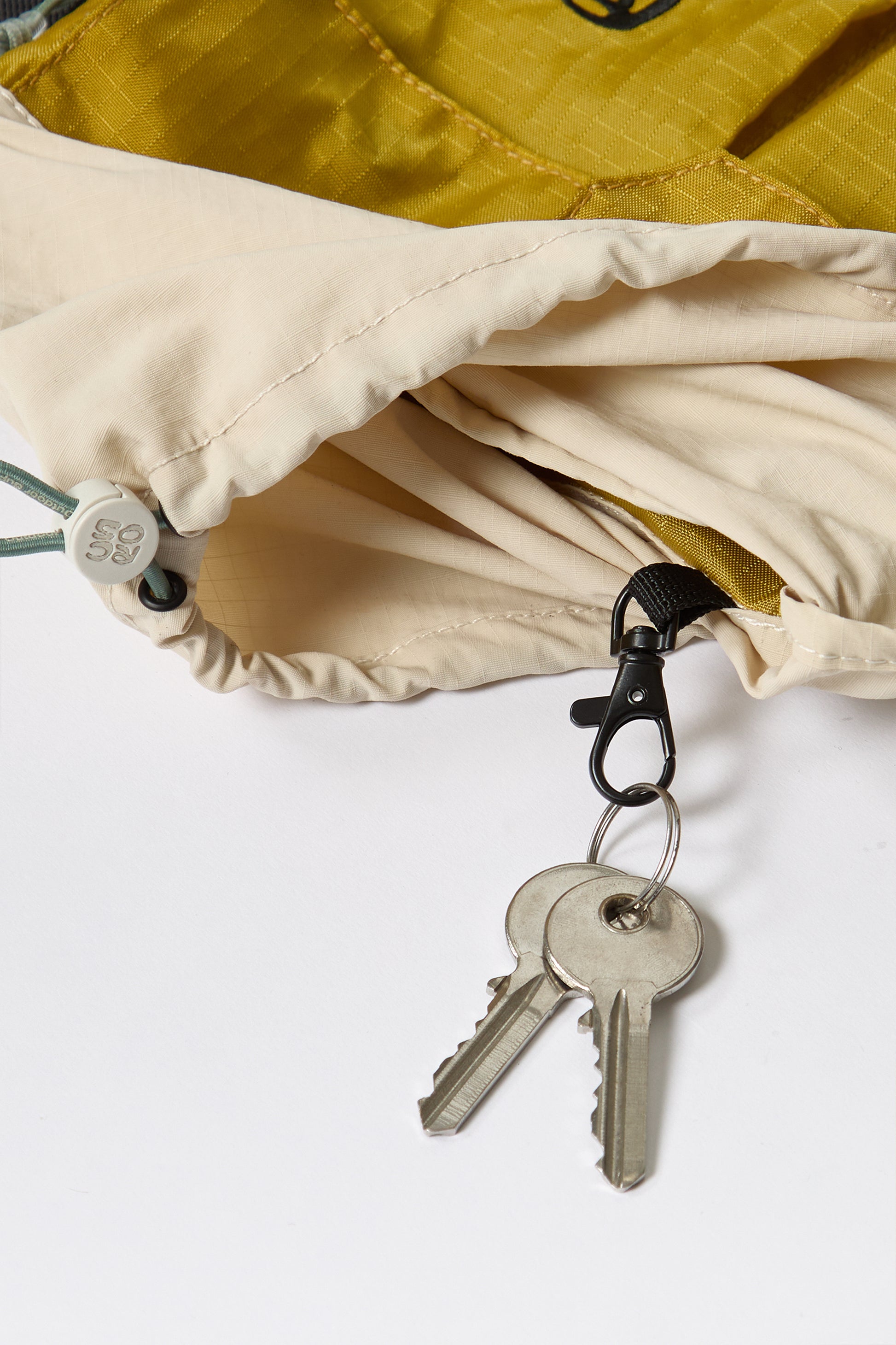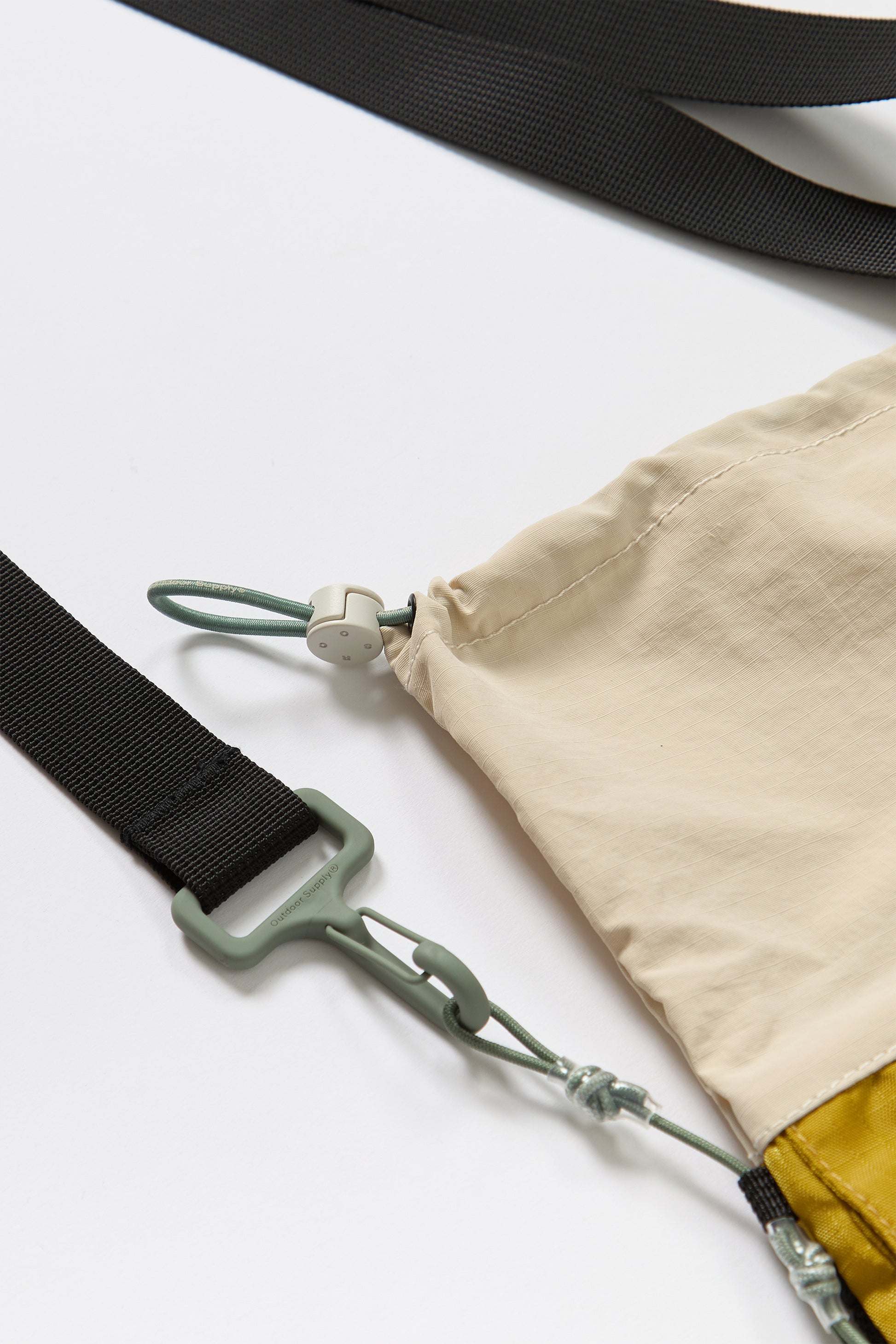 An everyday sacoche bag for the trail or city. Constructed from a durable nylon ripstop with a bungee cording top closure, 2 exterior cargo pockets on the front & a mesh pocket on the back. The bag is finished with an adjustable strap & key clip on the interior.